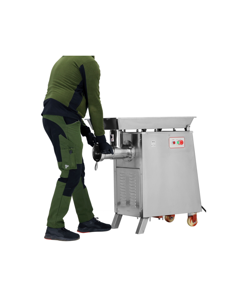 An exceptionally efficient meat grinder for both raw and thermally processed meat. It is ideal for professional kitchens, food processing plants, mass catering establishments, hotels, butcher shops and delicatessens, restaurants, and catering companies.