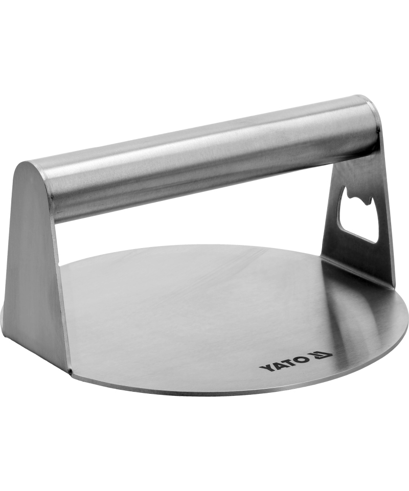 Professional meat press, designed for perfect smash burgers. Its solid, appropriately weighted construction ensures quick and even flattening of meat, creating an ideally thin, crispy patty. Proper preparation ensures that burgers fry quickly and evenly on any pan or grill, while maintaining unparalleled juiciness and appetizing crispiness.