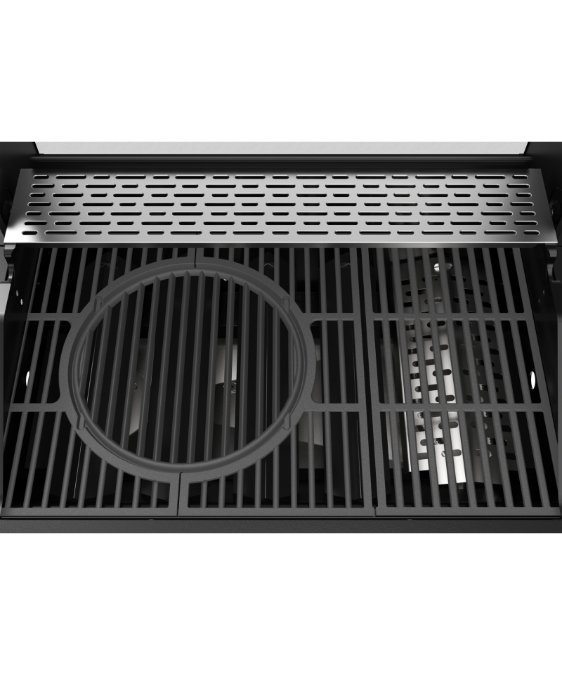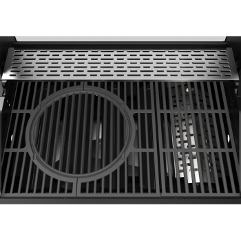 - Cast iron grate with dimensions of 700 × 420 mm provides a large grilling surface, ideal for preparing meals for the whole family or a larger group. Cast iron perfectly retains and evenly distributes heat, which translates into ideal browning of dishes. Additionally, part of the grate is removable, allowing for easy replacement with a cast iron plate, cast iron pan, or pizza stone (available separately), increasing the grill's versatility. \t