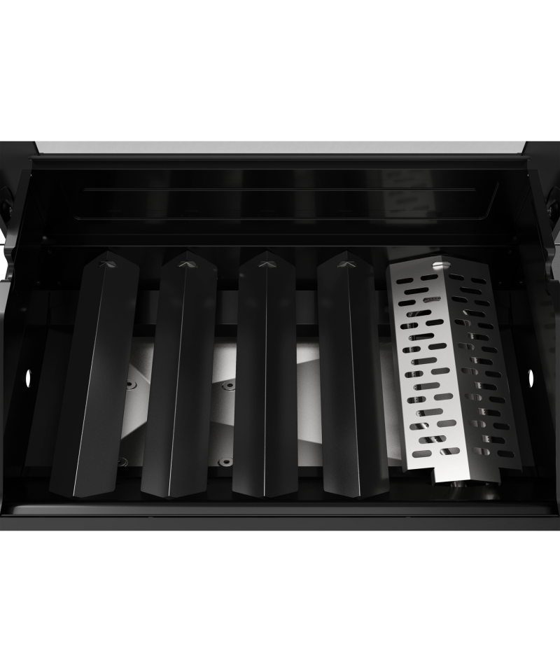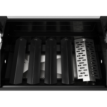- 1 stainless steel flavorizer, placed above the 4 kW burner, effectively protects it from fat and food residues, while enhancing the aroma of grilled dishes. Thanks to the cutouts, it ensures better heat circulation and even flavor distribution. Made of stainless steel, it guarantees exceptional durability and high corrosion resistance. \t