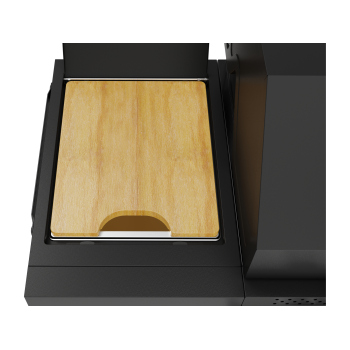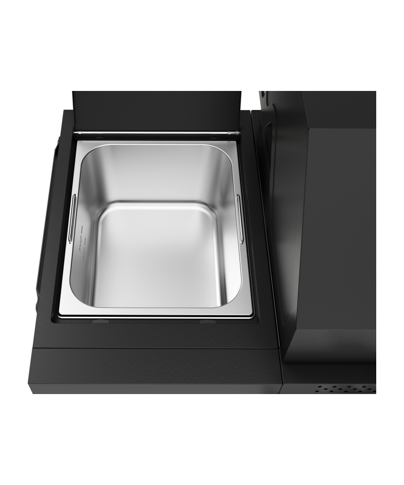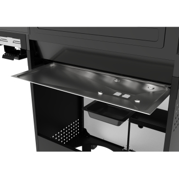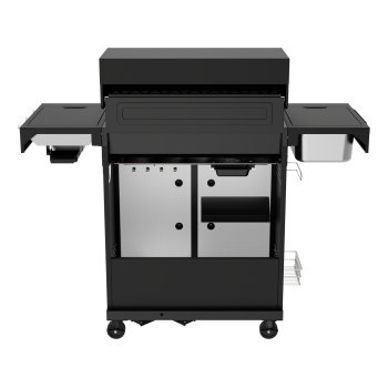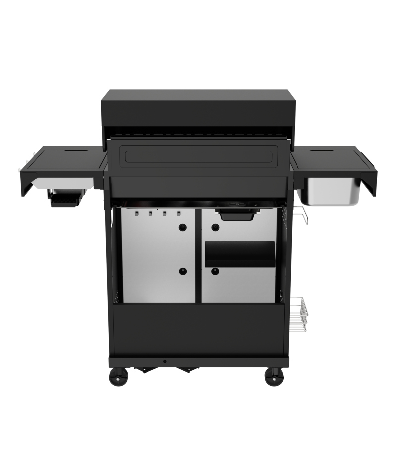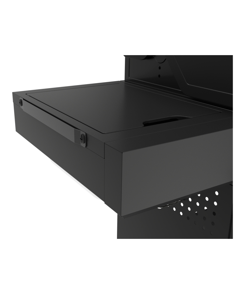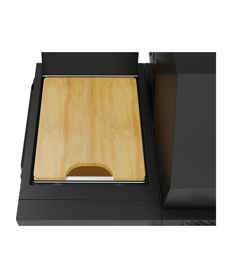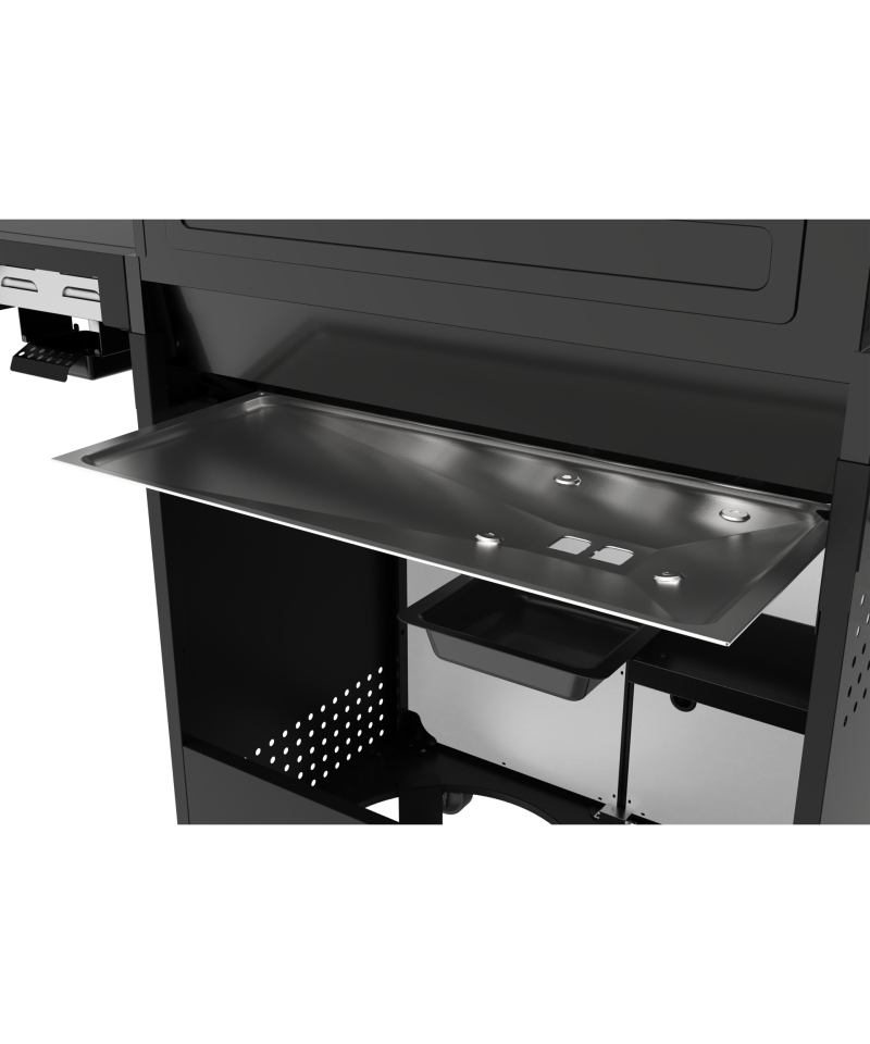 - The side shelf is equipped with a pull-out wooden cutting board, which facilitates food preparation. Additionally, a steel container (stainless steel) allows for convenient storage of ingredients or prepared dishes right next to the grill. The ability to remove the container using 2 handles ensures easy cleaning. \t