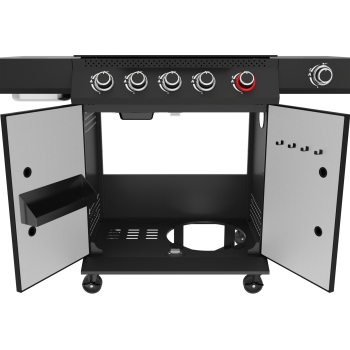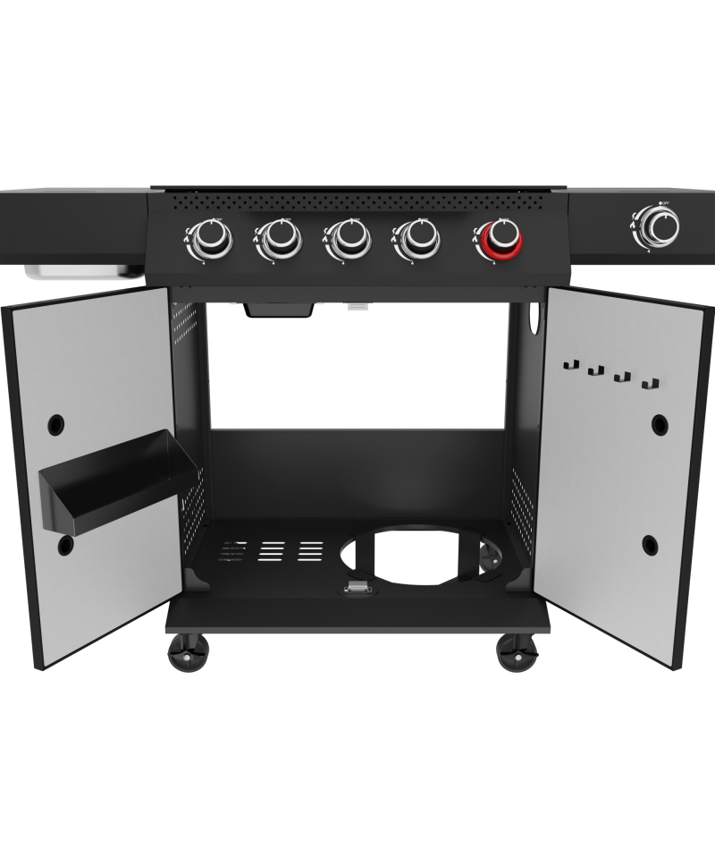 - Spacious cabinet with dimensions of 700 x 455 x 555 mm, enclosed by double-layered doors, offers plenty of space for storing grilling accessories and spices. Inside, there is a specially designated place for an 11 kg gas cylinder, which facilitates organization and safe storage. \t