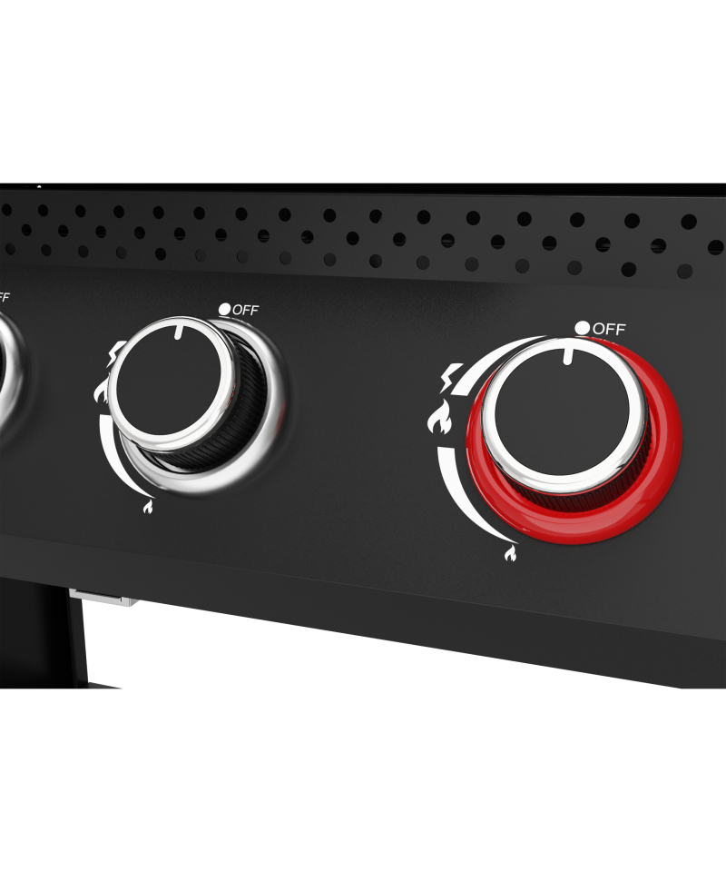 - Each burner is equipped with an independent igniter integrated with a separate knob, enabling quick and safe activation of the selected grill zone. This allows you to precisely control the temperature and efficiently use only the burners currently needed, increasing convenience and saving gas. \t
