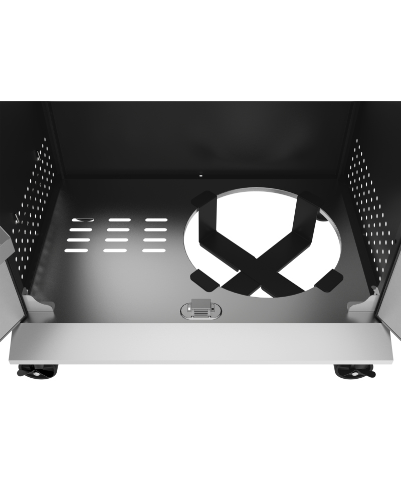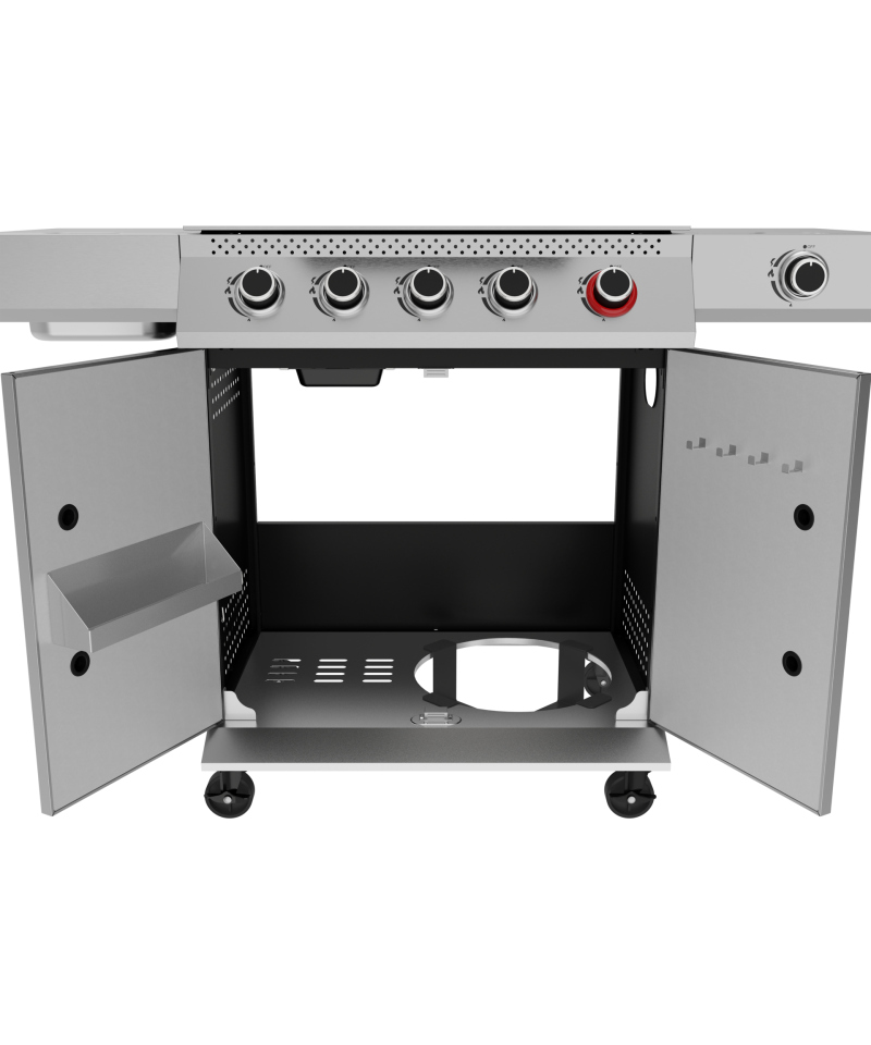 - Spacious cabinet (700 x 455 x 555 mm) – Closed with double-layer doors, it offers ample space for storing grilling accessories and spices. Inside, a special place is provided for an 11 kg gas cylinder, which significantly facilitates organization and safe storage. \t