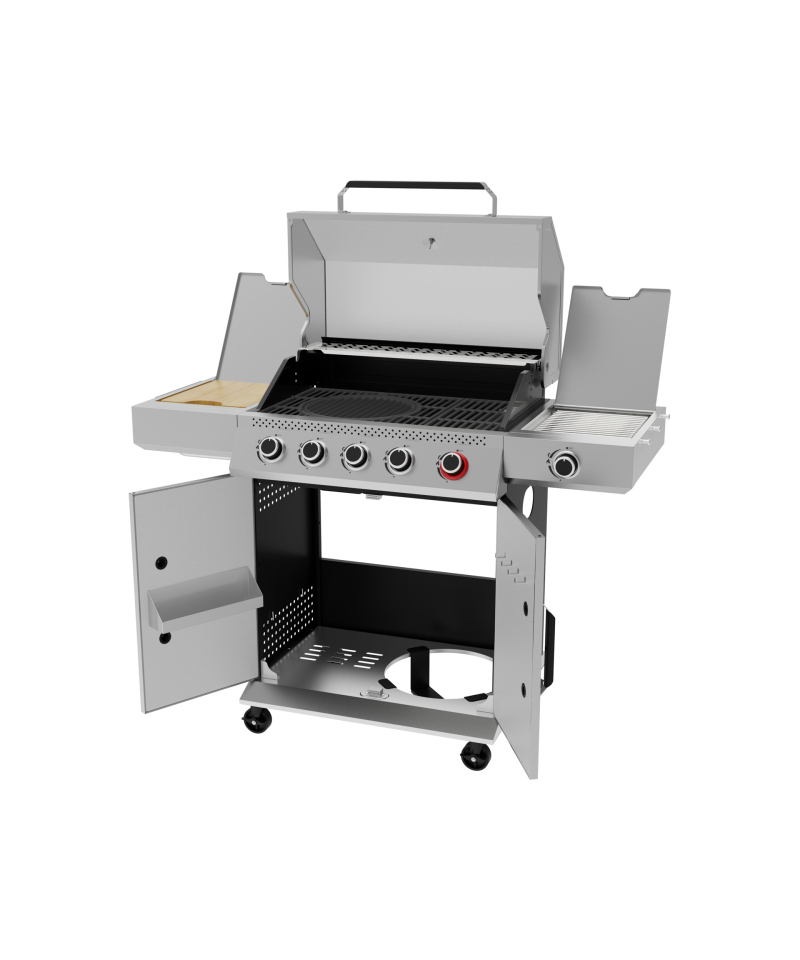 - The model is equipped with **three different types of burners**, allowing for ideal adjustment of the grilling method to the specifics of the prepared dish, guaranteeing versatility and excellent results.