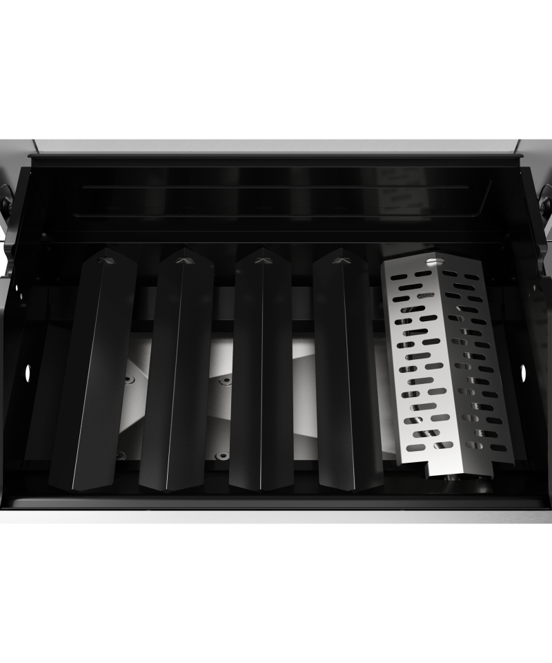 - 1 stainless steel flavorizer – Placed above the 4 kW burner, it effectively protects it from fat and food residues, while enriching the aroma of grilled dishes. Its cutouts promote better heat circulation and even flavor distribution. Made of stainless steel, it ensures exceptional durability and high corrosion resistance. \t