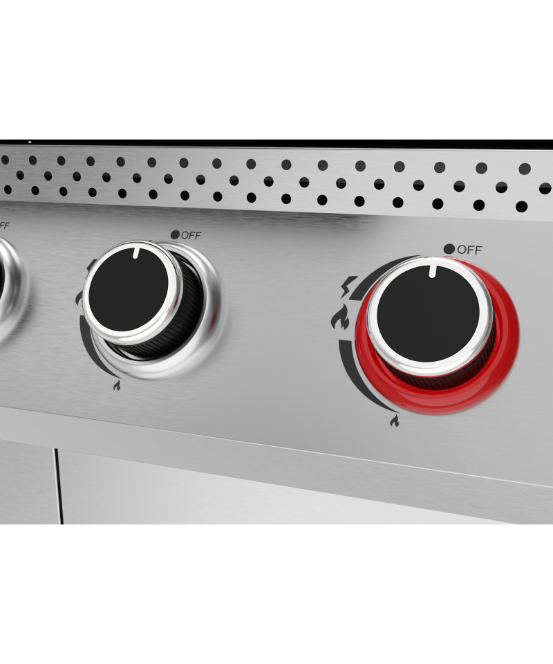 \t - Each burner is equipped with an independent igniter integrated with a separate knob, which guarantees quick and safe activation of the selected grill zone. This solution enables precise temperature control and efficient use of only the necessary burners, increasing ease of operation and contributing to gas savings. \t