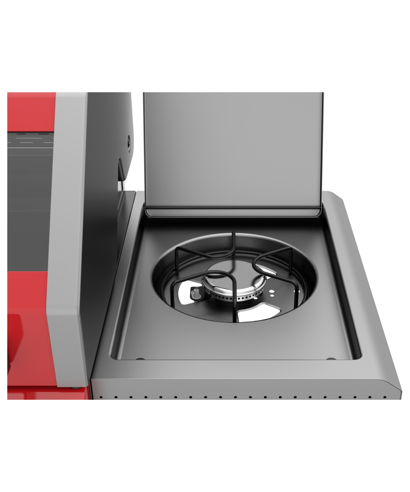 The versatile 2.2 kW side burner expands culinary possibilities, allowing simultaneous cooking and heating of dishes in a pot or pan. User comfort is enhanced by a dedicated space for a gas cylinder and an innovative glass window in the lid, enabling constant monitoring of the grilling process without heat loss.