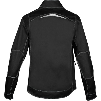 The jacket features multiple functional pockets, including a special mobile phone pocket made from E-WARD fabric that protects the body from electromagnetic waves while maintaining excellent signal reception. Reflective details enhance visibility in low-light conditions, while the front zipper and plastic snap closure provide practical usability. Combining resilience, flexibility, and style, the LEFKADA jacket is designed for professionals in construction, logistics, and industry who need reliable protection without compromising on comfort.