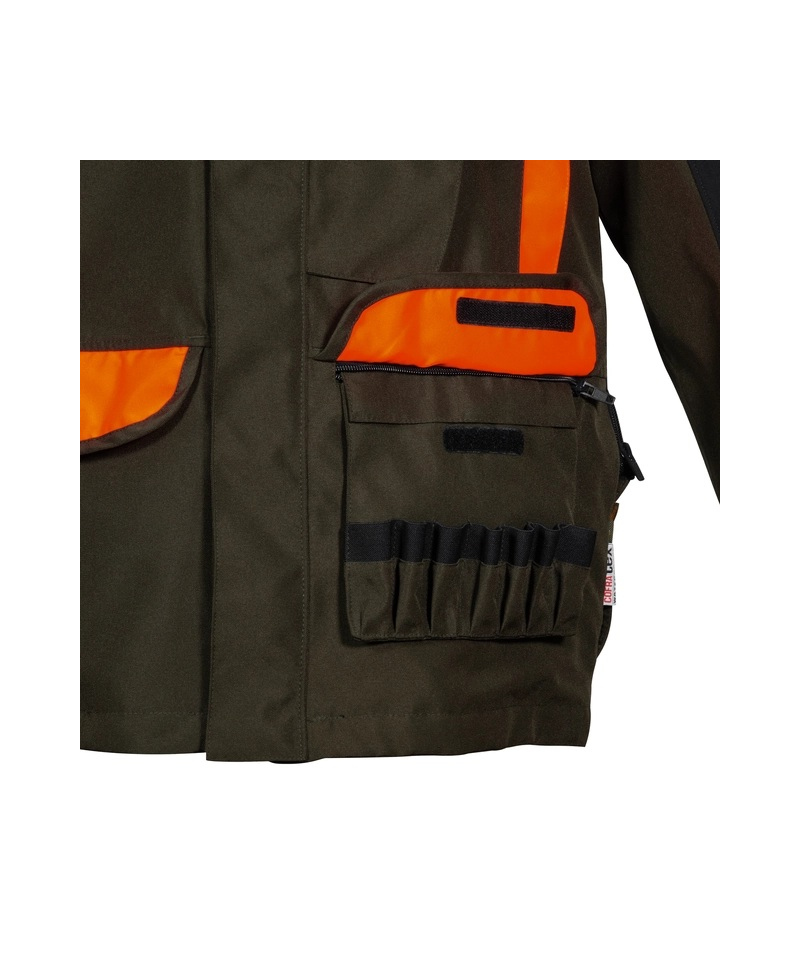 The RENK jacket from the WINTER and WOODSWEAR line combines advanced technology with a functional design tailored for professionals and outdoor enthusiasts working in challenging weather conditions. Made from abrasion-resistant polyester and nylon fabrics with the COFRA-TEX membrane, it offers full waterproof and windproof protection while maintaining excellent breathability. The COFRA-TEX membrane, elastic in four directions, provides superior comfort, lightness, and durability even under intense use. Multiple pockets, including rifle and carbine holders, a radio pocket, and a large waterproof rear pocket, make this jacket perfect for hunters and field workers.