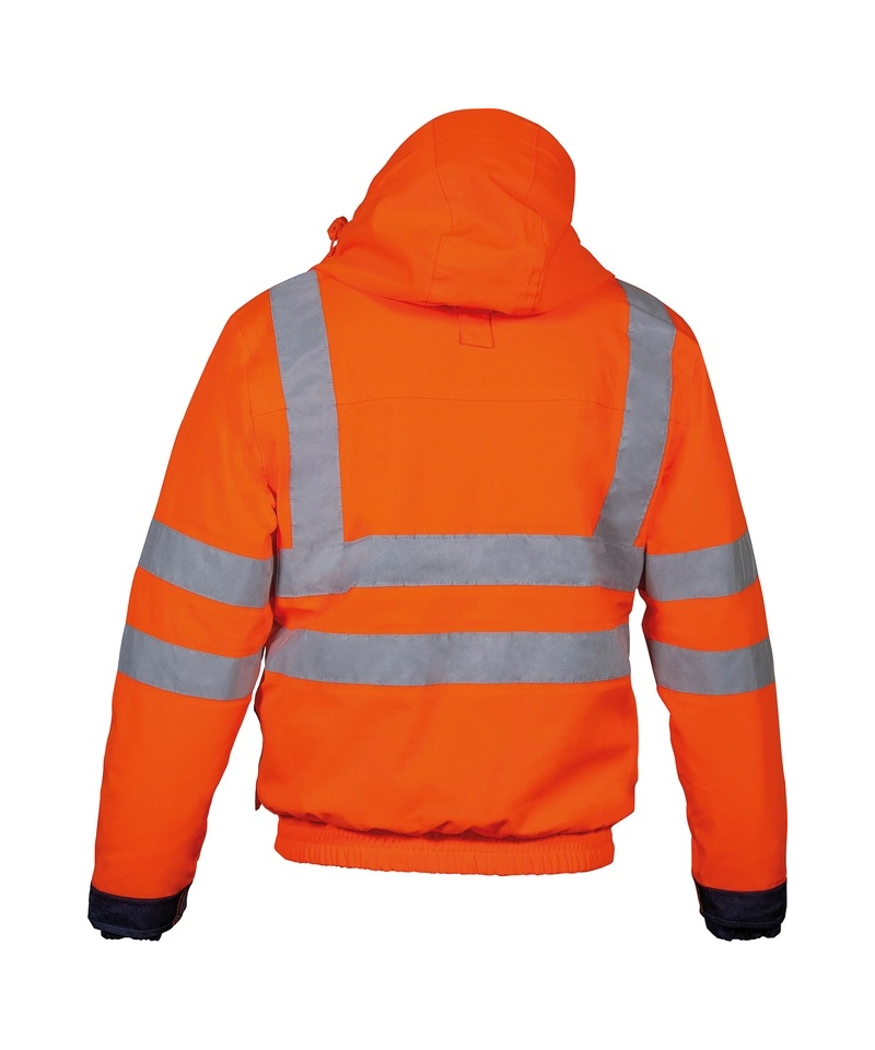 FLUO stands out for its practical design and attention to detail. It includes two large front pockets with hook-and-loop closures, two inner chest pockets with zippers, a detachable hood, and a transparent ID pocket with a loop. The elastic waistband and cuffs offer a perfect fit, while thermally sealed seams prevent water infiltration. Reflective tapes enhance visibility, ensuring safety in low-light conditions.