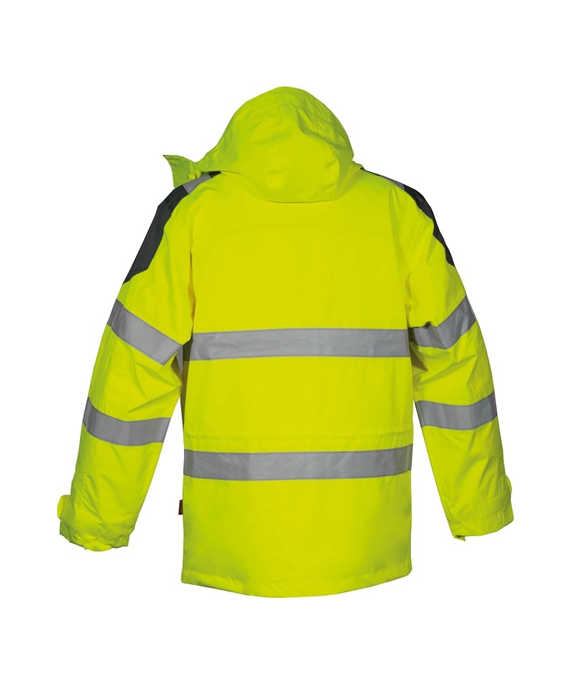 The RIVAS jacket combines high visibility with wind and water protection. Multiple pockets adjustable hood and cuffs with hook-and-loop fasteners enhance functionality and comfort. It complies with EN ISO 13688 and EN ISO 20471 Class 3 standards ensuring certified safety and reliability.