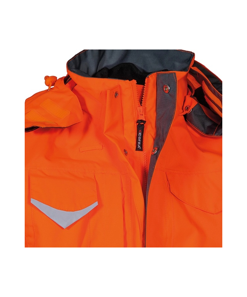 The PROTECTION parka is a versatile and high-performance jacket designed to provide comfort, warmth, and safety in all weather conditions. It combines a durable, waterproof, and windproof outer shell with a detachable inner insulated jacket, allowing the user to adapt to changing environments with ease. With its high-visibility design and reliable protection against cold and rain, the PROTECTION parka is ideal for professionals working in sectors such as logistics, construction, agriculture, or railway operations.