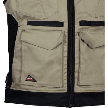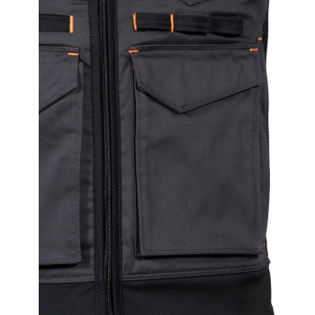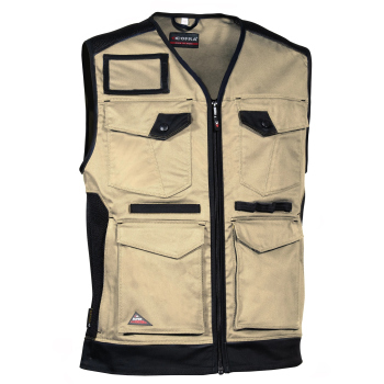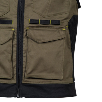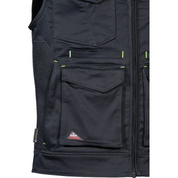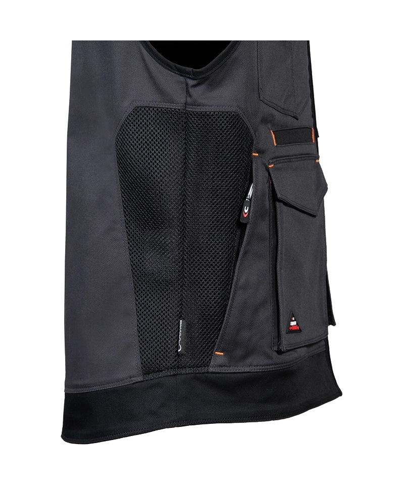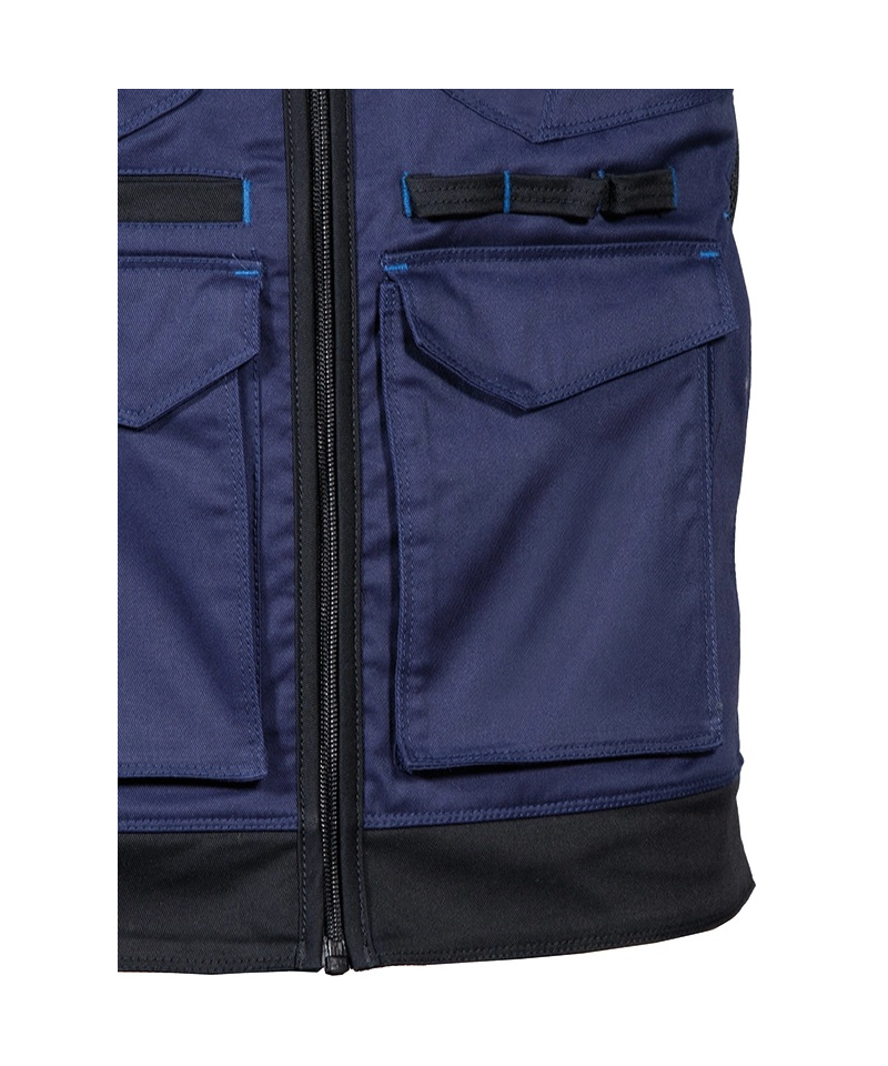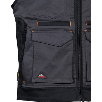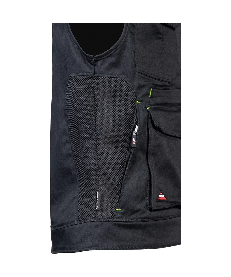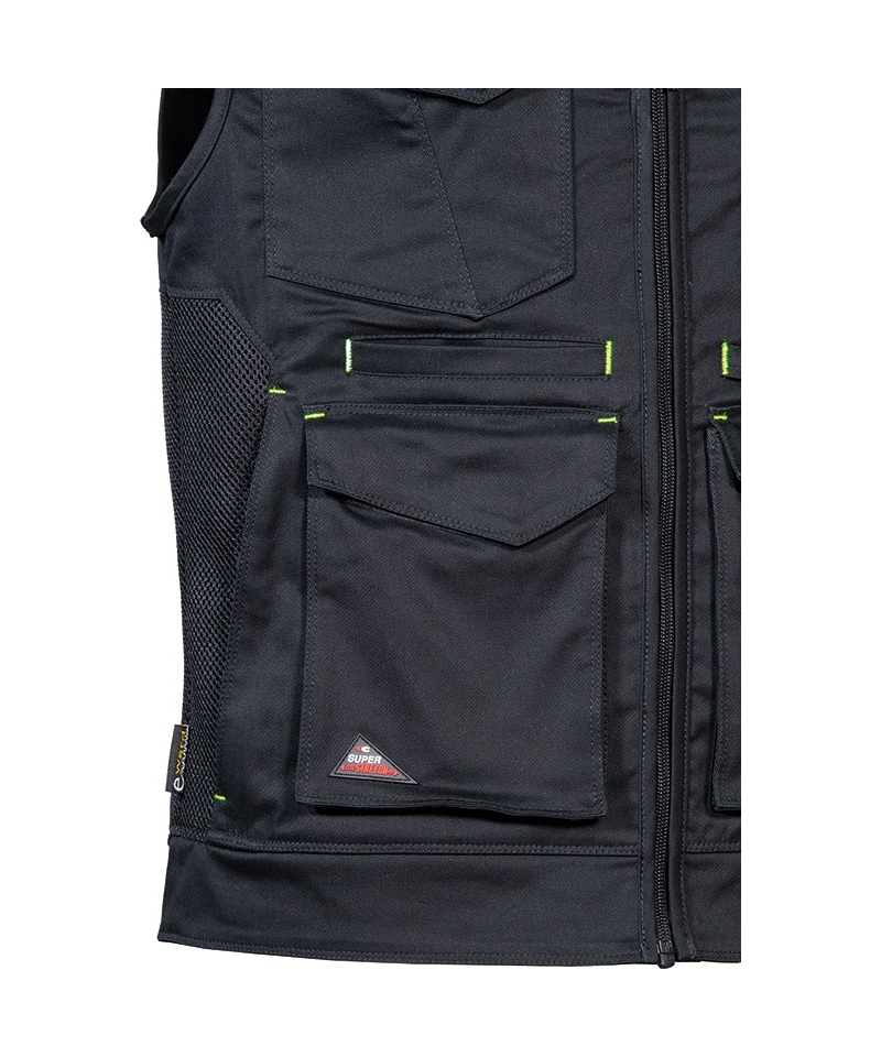 The KUNIR vest from the SUPERSTRETCH line combines advanced flexibility, functionality, and modern style, designed for professionals who need full freedom of movement during demanding tasks. Made from a highly elastic fabric with added elastane, it offers a slim, body-hugging fit while maintaining exceptional comfort. The durable twill weave fabric provides outstanding resistance to wear and tear, ensuring long-lasting shape and color retention even after multiple washes. Perforated panels along the shoulders improve breathability, while the mesh lining enhances airflow for all-day comfort.