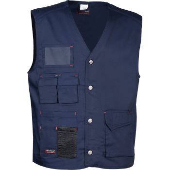 The NAIROBI vest from the ENTRY-L line is a lightweight and durable workwear garment designed for maximum comfort and practicality. Made from a fabric blend of 65% polyester and 35% cotton with a weight of 245 g/m², it combines durability and softness, ensuring unrestricted movement and long-lasting performance. The vest features multiple pockets, including large front pockets with Velcro closures and smaller compartments that provide convenient storage for tools and accessories. Side slits improve ventilation and mobility, while the dedicated ID pocket adds a professional touch to the design.