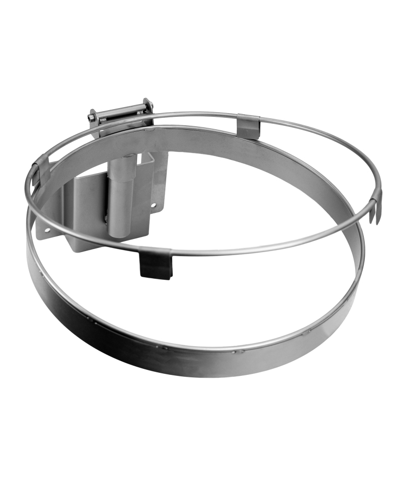 A stainless steel holder designed for mounting waste bags. Equipped with a welded mounting plate. The holder can be used as an open waste bin or with a retaining ring that keeps the bag opening securely in place.