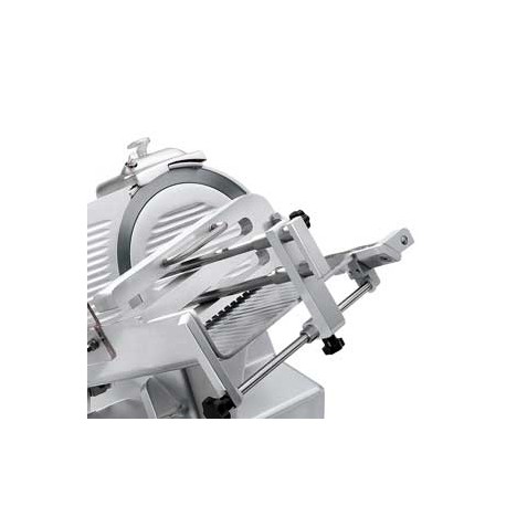 Additionally, an optional unique "Nettuno" carriage with a weight and adjustable vertical product guard is available, providing stability and even slicing.