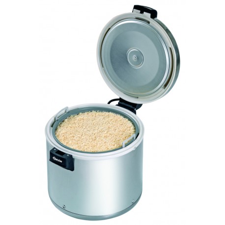 This Bartscher rice warmer is an excellent kitchen tool that allows for the efficient reheating of large quantities of rice. It has a substantial capacity of 12 liters, enabling it to maintain warmth effectively. Equipped with a special inner pot with a non-stick coating, it simplifies cooking and facilitates easy cleaning by preventing rice from sticking. The device is available in a silver color and features very large handles, making it easy to transport. Practical accessories, such as a rice spoon and a mixing spoon, are included in the set. The product is made from durable stainless steel.
