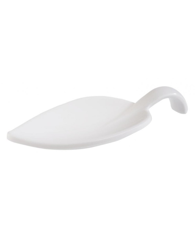 Elegant and practical, leaf-shaped spoon made of white melamine. Perfect for serving all kinds of finger food.