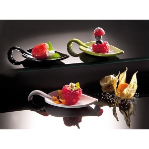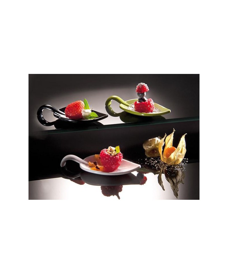 Elegant and practical, leaf-shaped spoon made of black melamine. Perfect for serving all kinds of finger food.