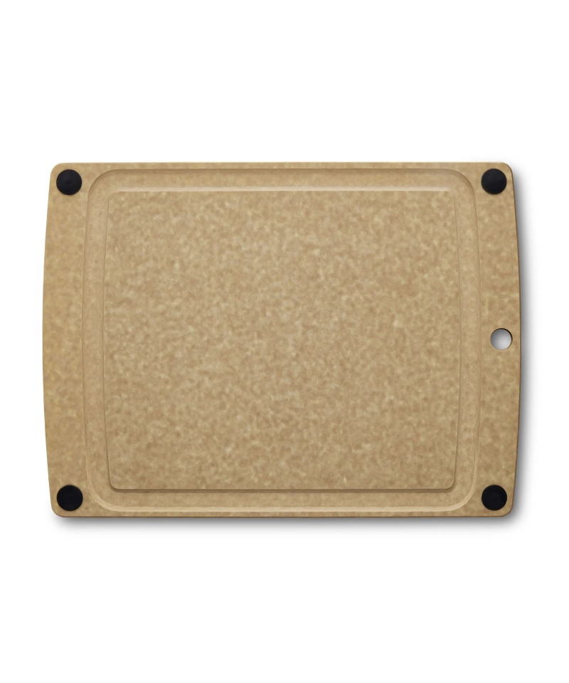 Deska do krojenia All-in-One: idealny towarzysz kulinarnych przygód! Wykonana z wytrzymałego kompozytu papierowego, nie tępi noży i wytrzymuje wysokie temperatury. Praktyczny ociekacz na sok i zdejmowane kauczukowe nóżki sprawiają, że jest łatwa w utrzymaniu czystości.