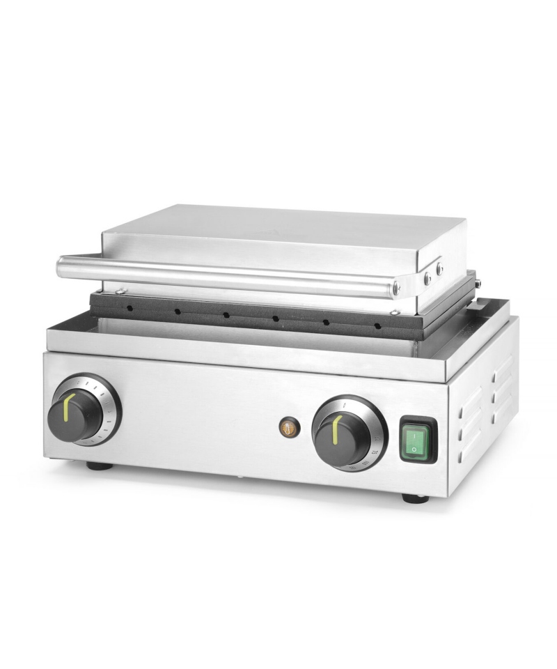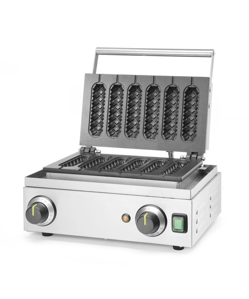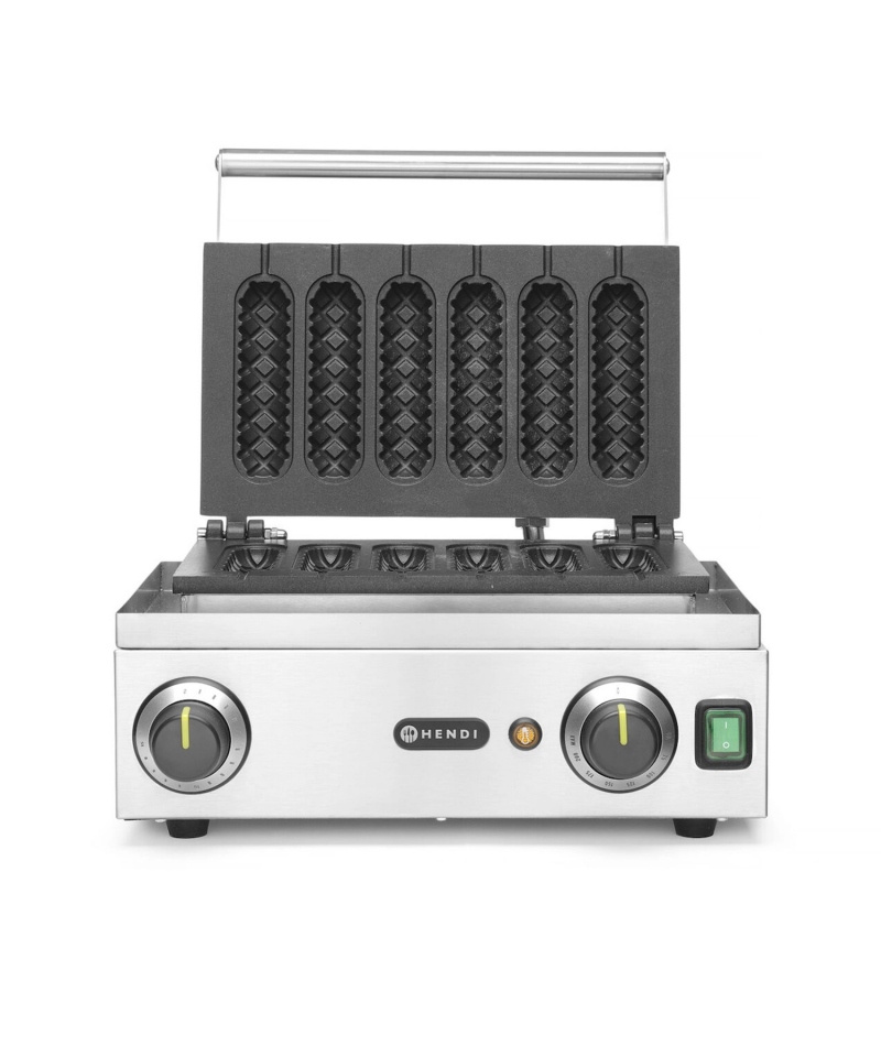 Gofrownica Corn Dog HENDI to niezawodne urządzenie do wypieku oryginalnych przekąsek w formie gofrów na patyku – zarówno słodkich, jak i w wersji wytrawnej inspirowanej corn dogami. To idealny wybór dla kawiarni, food trucków i punktów street food, które chcą zaskoczyć klientów nową, efektowną propozycją.