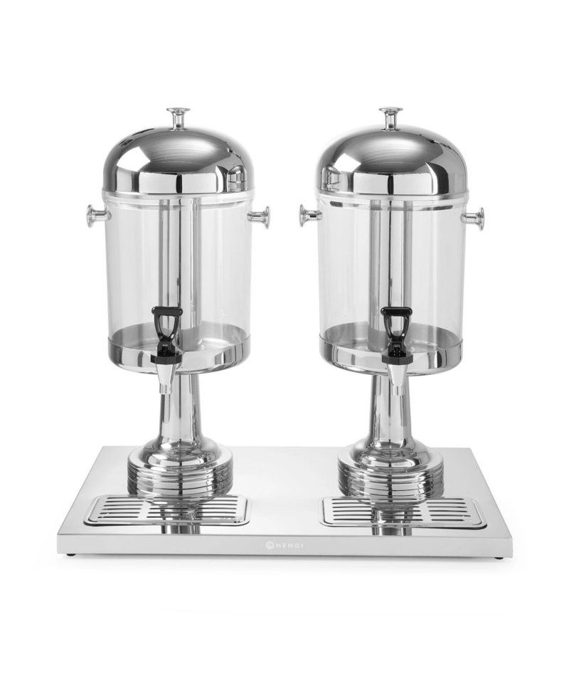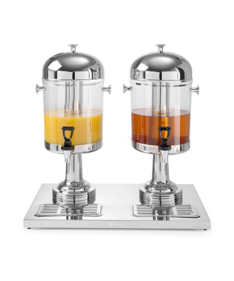 Dyspenser do soków Hendi o pojemności 16 litrów (2 x 8 L) to doskonałe rozwiązanie dla gastronomii, cateringu, hoteli oraz wszelkich wydarzeń, gdzie liczy się szybkie, higieniczne i efektowne serwowanie napojów. Dzięki wkładowi na lód ze stali nierdzewnej napój jest stale chłodzony, co zapewnia idealną temperaturę serwowania i wyjątkowe uczucie orzeźwienia.