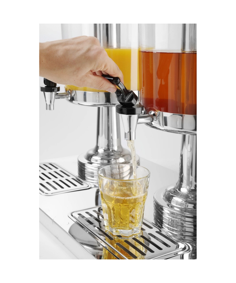 Zbiornik wykonany z odpornego i bezpiecznego dla żywności poliwęglanu cechuje się trwałością, lekkością i estetyką. Dyspenser do soków został zaprojektowany z myślą o maksymalnej wygodzie użytkownika – zdejmowana kratka ociekowa ułatwia czyszczenie, a wylewka na wysokości 120 mm umożliwia łatwe nalewanie bez rozchlapywania. Dodatkowym atutem jest niekapiący kranik, który eliminuje problem nieestetycznych zacieków.