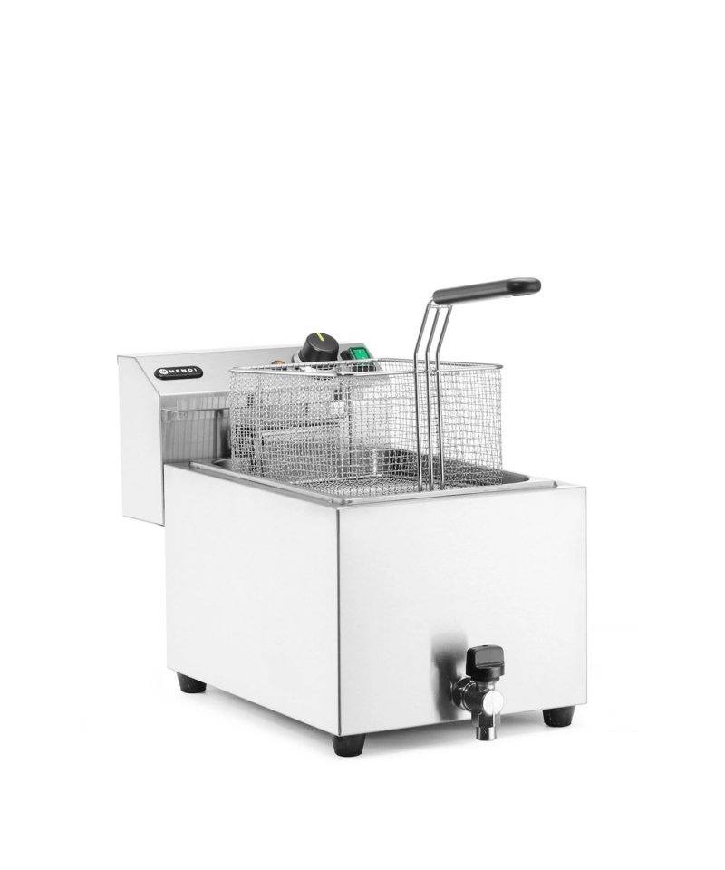 Wyposażona w zintegrowany kran spustowy, frytkownica XL Hendi umożliwia wygodne opróżnianie tłuszczu bez rozlewania. Dodatkowo dno w kształcie litery „V” tworzy tzw. zimną strefę, która ogranicza przypalanie resztek i przedłuża żywotność oleju.