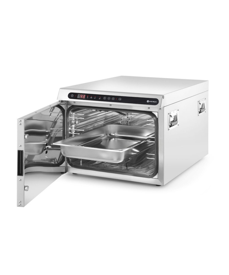 Piec do gotowania w niskich temperaturach marki HENDI to niezawodne urządzenie stworzone z myślą o profesjonalistach. Zapewnia precyzyjne warunki obróbki termicznej w zakresie od 1°C do 120°C, idealne do sous vide, pieczenia konwekcyjnego oraz powolnego gotowania mięsa, ryb i deserów.