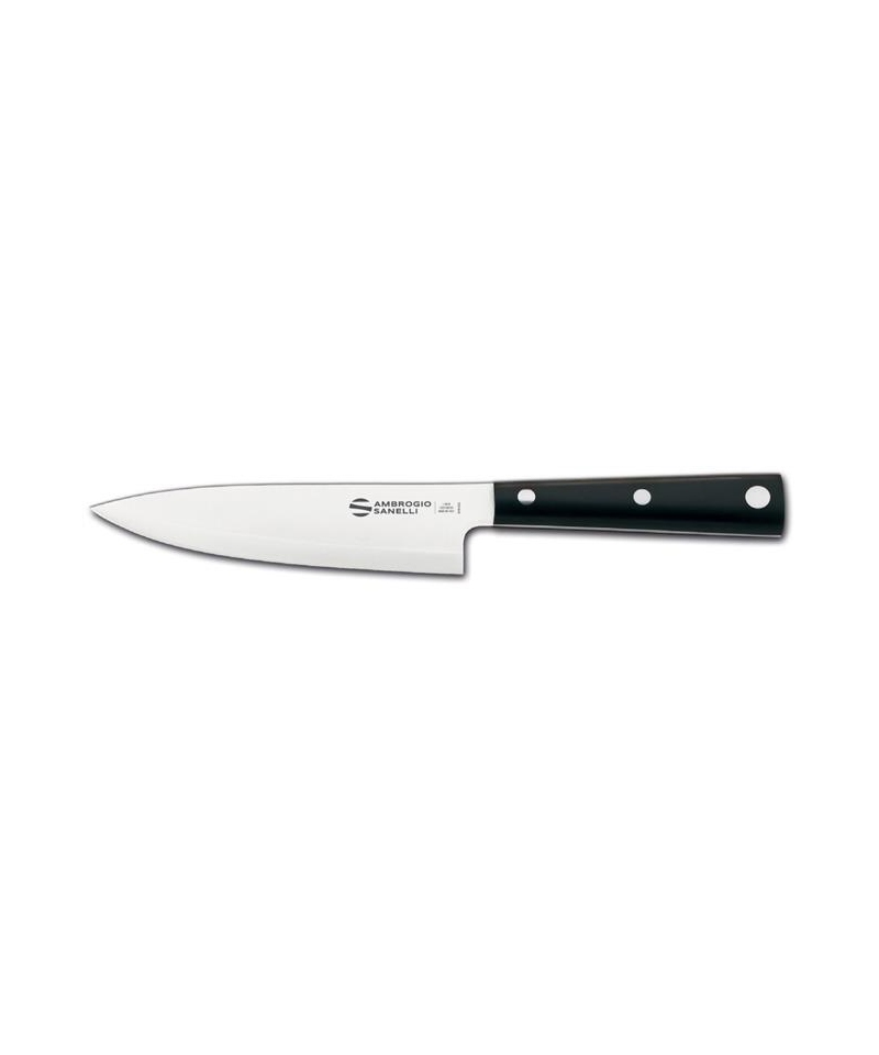 Profesjonalny nóż szefa kuchni Ambrogio Sanelli Hasaki 16 cm to narzędzie zaprojektowane dla najbardziej wymagających kucharzy. Wyróżnia się połączeniem włoskiej precyzji z japońską filozofią cięcia. Ostrze wykonane ze stali nierdzewnej Nitro-B z dodatkiem azotu gwarantuje doskonałą ostrość, odporność na korozję i długą żywotność. Ergonomiczna rękojeść z tworzywa POM zapewnia pewny chwyt i komfort pracy nawet podczas długiego użytkowania.