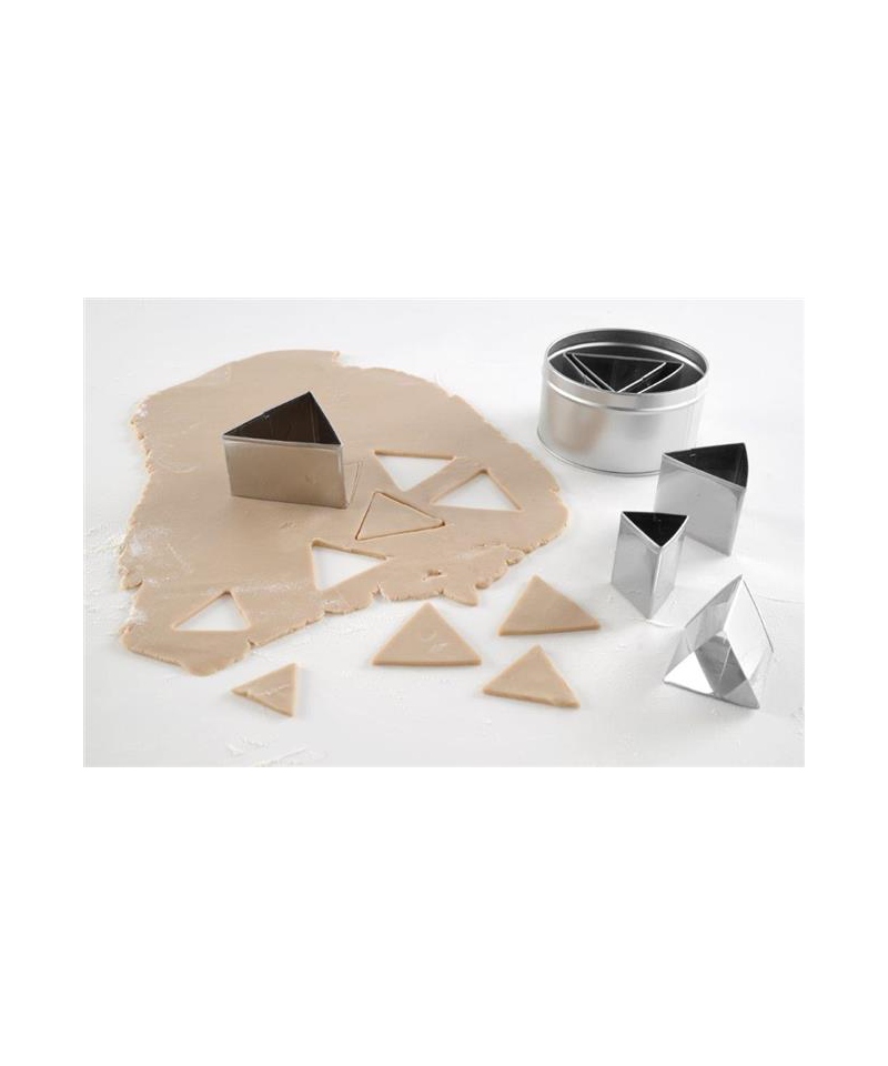 Zestaw sześciu stalowych foremek w kształcie trójkąta to profesjonalne narzędzie dla cukierni, piekarni i stref gastronomicznych, które pragną nadać wypiekom i dekoracjom wyjątkową formę. Każda foremka została wykonana ze stali nierdzewnej, co zapewnia trwałość, łatwość utrzymania czystości oraz możliwość wielokrotnego użycia w pracy zawodowej. Zestaw umożliwia szybkie i precyzyjne wycinanie trójkątnych kształtów z ciasta, mas cukierniczych lub materiałów dekoracyjnych.