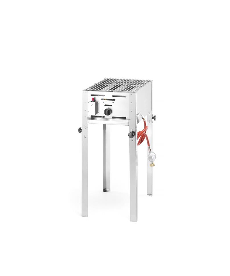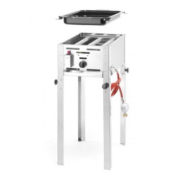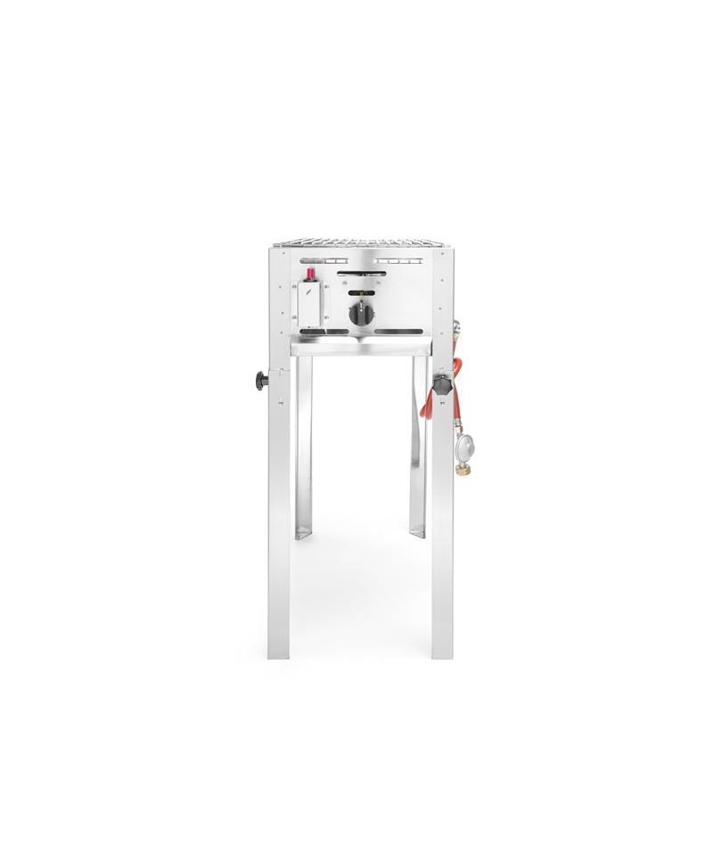 Grill lawowy gazowy Bartscher to wydajne urządzenie o dużej mocy 8 kW, idealne do grillowania na dwóch niezależnych strefach grzewczych. Może działać na gazie ziemnym H lub propanie, co sprawia, że jest elastyczne w użytkowaniu. Regulowana wysokość rusztu grillowego pozwala na dopasowanie do różnych rodzajów mięsa, a solidna konstrukcja ze stali szlachetnej i kamienie lawowe w zestawie zapewniają trwałość i efektywność grillowania.