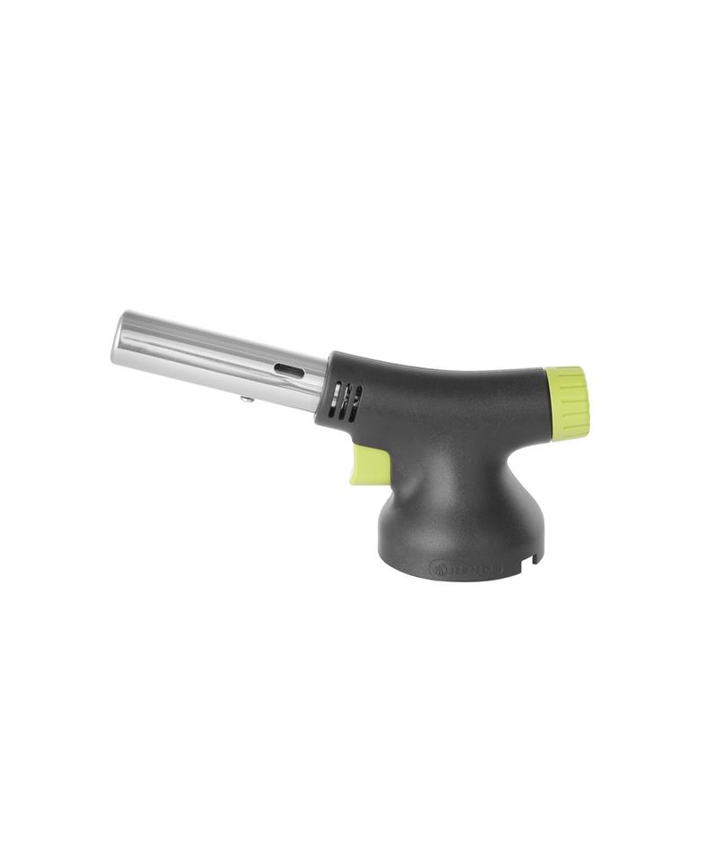 Dzięki specjalnej konstrukcji może pracować w każdej pozycji, nawet z płomieniem skierowanym pionowo w górę, co daje pełną swobodę działania. Regulacja wielkości płomienia w zakresie od 15 do 150 mm pozwala na idealne dopasowanie intensywności do potrzeb — od delikatnego przypiekania deserów po mocne karmelizowanie cukru. Wyposażony w zapalnik piezoelektryczny i wygodne pokrętło gazu, gwarantuje bezpieczeństwo, precyzję i niezawodność. Wkład gazowy montuje się łatwo i bezpiecznie, a po jego zużyciu można go bez problemu wymienić.