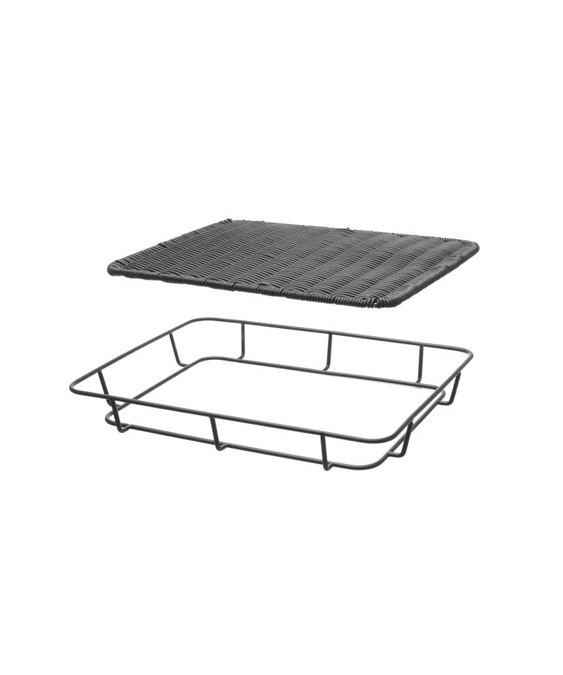 Czarny kosz do pieczywa ze stalową ramą stanowi eleganckie i funkcjonalne rozwiązanie do bufetów, restauracji, barów i kawiarni. Stabilna konstrukcja z ramą ze stali nierdzewnej oraz matowym czarnym korpusem gwarantuje trwałość i nowoczesny wygląd. Kosz umożliwia atrakcyjną prezentację pieczywa, bułek czy wypieków, ułatwiając ich szybkie podanie oraz zachowanie porządku w strefie serwisowej.