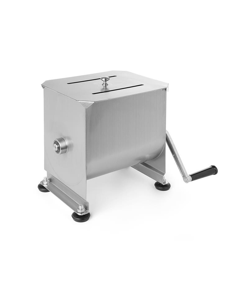 Mieszarka pozwala na jednorazowe przetworzenie do 6,5 kg mięsa pierwszej klasy, co zapewnia optymalną wydajność dla małych i średnich produkcji. Ręczny napęd za pomocą ergonomicznej korbki eliminuje zależność od dostępu do energii elektrycznej, umożliwiając pracę w dowolnym miejscu. To rozwiązanie nie tylko obniża koszty eksploatacji, ale również zwiększa mobilność urządzenia.