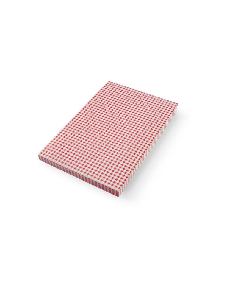Podkładka z papieru pergaminowego – opakowanie zawiera 500 arkuszy, wariant podstawowy w wersji „kratka”. Produkt stanowi wysokiej jakości arkusze pergaminowe przeznaczone do gastronomii oraz punktów serwisowych, służące jako podkładki pod serwowane dania lub przekąski w koszykach, tacach i pudełkach. Zapewnia estetyczne podanie i zwiększa higienę w obsłudze potraw.
