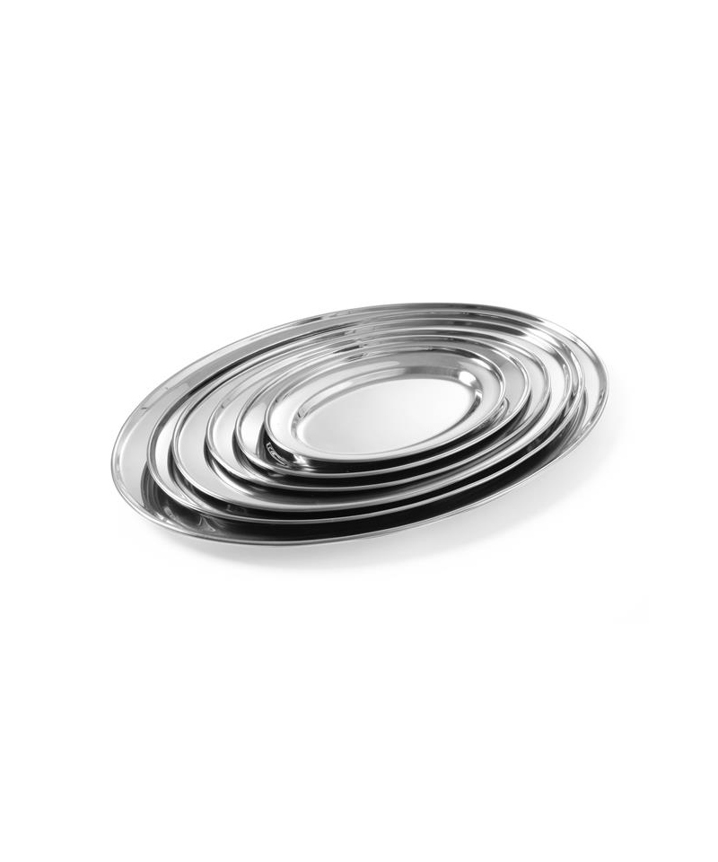 Taca do serwowania z dekoracyjnym rantem. Wykonana ze stali nierdzewnej o grubości 0,5 mm. Można myć w zmywarkach i sztaplować.