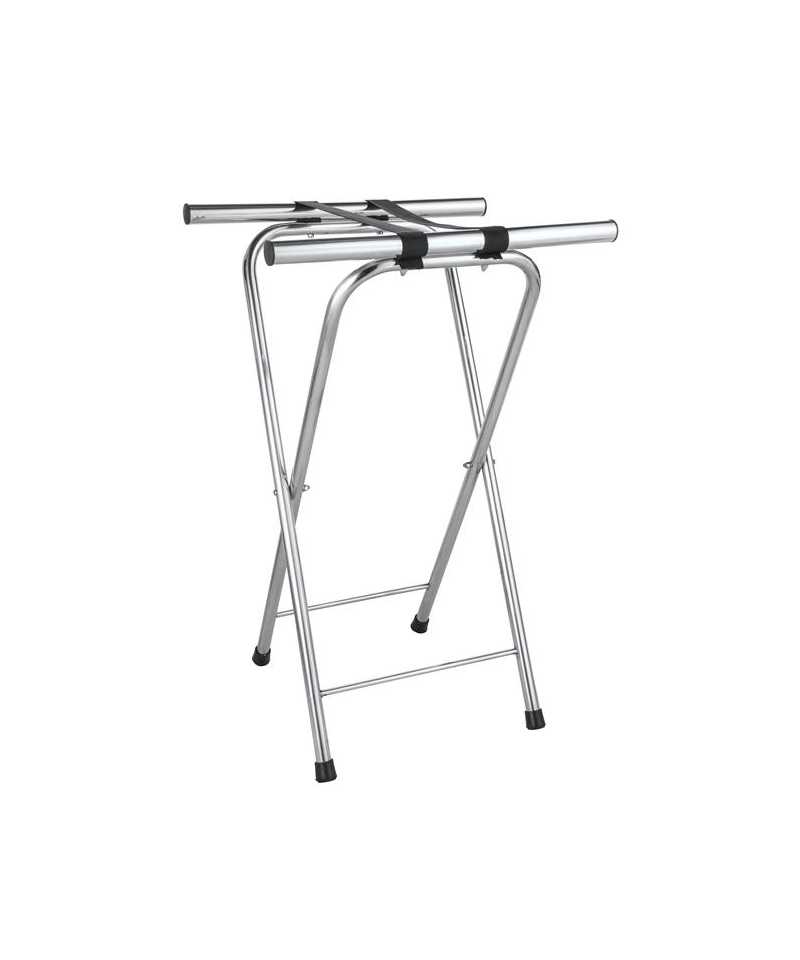 Stojak do tac marki HENDI to praktyczne i stabilne rozwiązanie, które doskonale sprawdza się w restauracjach, hotelach, salach bankietowych oraz cateringu. Umożliwia wygodne ustawienie tac w sytuacji, gdy brakuje miejsca na stole. Wykonany został z wysokiej jakości stali nierdzewnej, co gwarantuje trwałość i odporność na intensywne użytkowanie. Wyposażony jest w solidne, czarne pasy podtrzymujące oraz gumowe pierścienie antypoślizgowe, które zapobiegają zsuwaniu się tac. Konstrukcja jest składana, co ułatwia transport i przechowywanie.