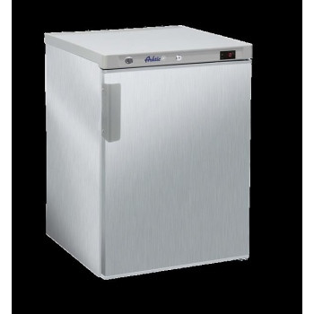 2-drzwiowy stół chłodniczy dla GN 2/3, bez blatu, parownik umieszczony na górze wewnątrz urządzenia, wymuszony obieg powietrza, automatyczne odszranianie i odparowanie kondensatu za pomocą gorącego gazu, elektroniczny sterownik, higieniczne wykonanie, gotowy do podłączenia.