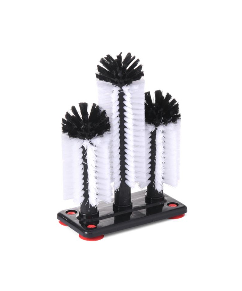 Szczotki do szklanek HENDI to praktyczne akcesorium barowe przeznaczone do dokładnego i wygodnego mycia szklanek, pokali oraz kufli. Zestaw składa się z trzech szczotek wykonanych z trwałego nylonowego włosia, osadzonych w solidnej podstawie z polipropylenu. Antypoślizgowe przyssawki umieszczone na spodzie zapewniają stabilność podczas użytkowania, zapobiegając przesuwaniu się szczotki po powierzchni roboczej. Produkt idealny do barów, restauracji i lokali gastronomicznych.