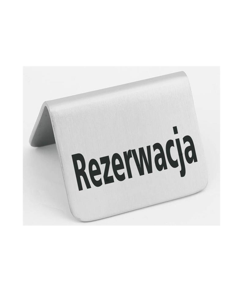 Tabliczka informacyjna z napisem „Rezerwacja” to praktyczne wyposażenie gastronomiczne służące do oznaczenia stolików, miejsc lub przestrzeni zarezerwowanych dla gości. Wariant podstawowy oznacza prostą konstrukcję — gotową do natychmiastowego użycia i łatwą w obsłudze. Produkt znajduje zastosowanie w restauracjach, kawiarniach, hotelach, salach bankietowych oraz innych miejscach, w których istotne jest przejrzyste oznaczenie zarezerwowanych miejsc.