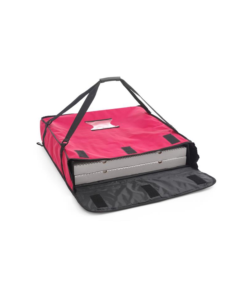 Torba do pizzy HENDI umożliwia bezpieczny i wygodny transport dwóch kartonów pizzy w odpowiedniej temperaturze. Wykonana z mocnych i łatwych w czyszczeniu materiałów, z praktycznym zamknięciem na rzepy oraz przezroczystą kieszenią na rachunki, stanowi idealne narzędzie dla każdej pizzerii.
