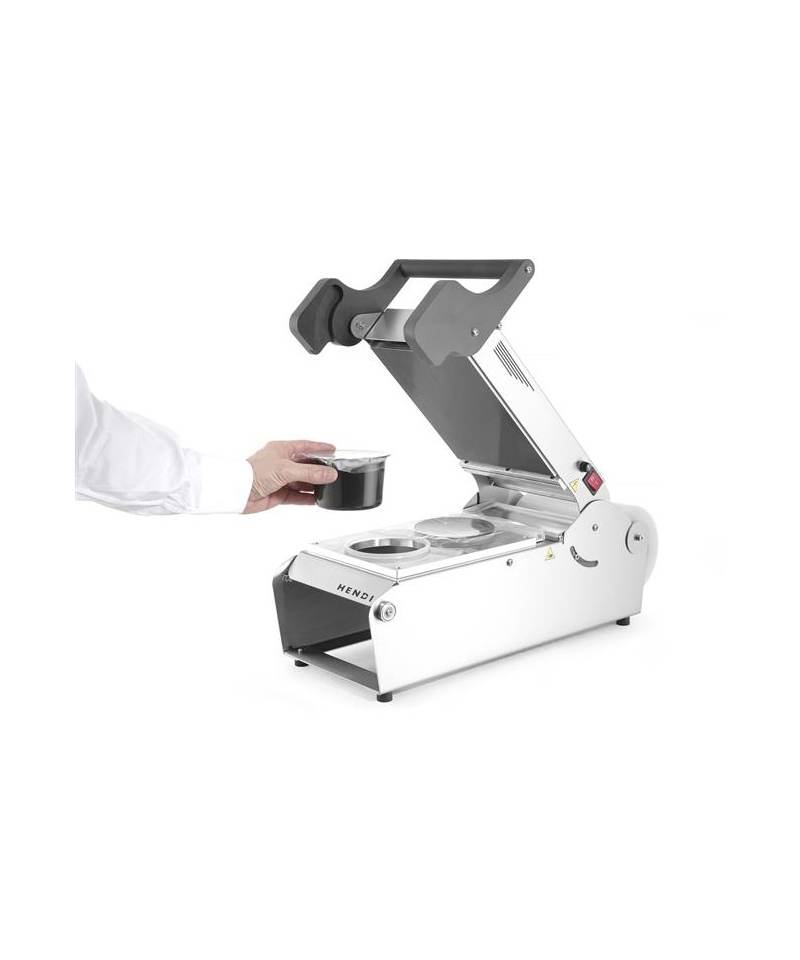 - Zgrzewanie tacek o rozmiarach do 235x190x(H)155 mm i kubków o wysokości do (H)170 mm