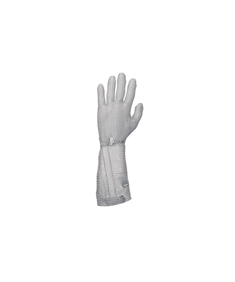 rękawice wykonane są z wysokiej jakości stali nierdzewnej, zapewniając maksymalną trwałość i ochronę. Dzięki średnicy pierścieni wynoszącej 4,2 mm i grubości drutu 0,55 mm, rękawice te oferują idealną równowagę pomiędzy elastycznością a wytrzymałością, gwarantując doskonałą odporność na przecięcia przy jednoczesnym zachowaniu komfortu. Ergonomiczny design rękawic zapewnia idealne dopasowanie, eliminując nadmiar siatki przy opuszkach palców, co pozwala na większą precyzję i swobodę ruchu. To przemyślane rozwiązanie zwiększa komfort, dzięki czemu rękawice są odpowiednie do długotrwałego noszenia podczas intensywnej pracy. Dodatkowo, rękawice nie wymagają żadnych dodatkowych części zamiennych, takich jak zatrzaski, sprzączki czy paski, co ułatwia ich użytkowanie i konserwację. Dzięki elastycznym wzmocnieniom rękawice oferują wyjątkowy komfort, jednocześnie zapobiegając zsuwaniu się z ramienia, co sprawia, że pozostają na swoim miejscu nawet podczas najcięższych zadań. Rękawice są również łatwe do czyszczenia, dzięki gładkiej powierzchni, która nie pozostawia żadnych resztek, co pozwala utrzymać wysokie standardy higieny.