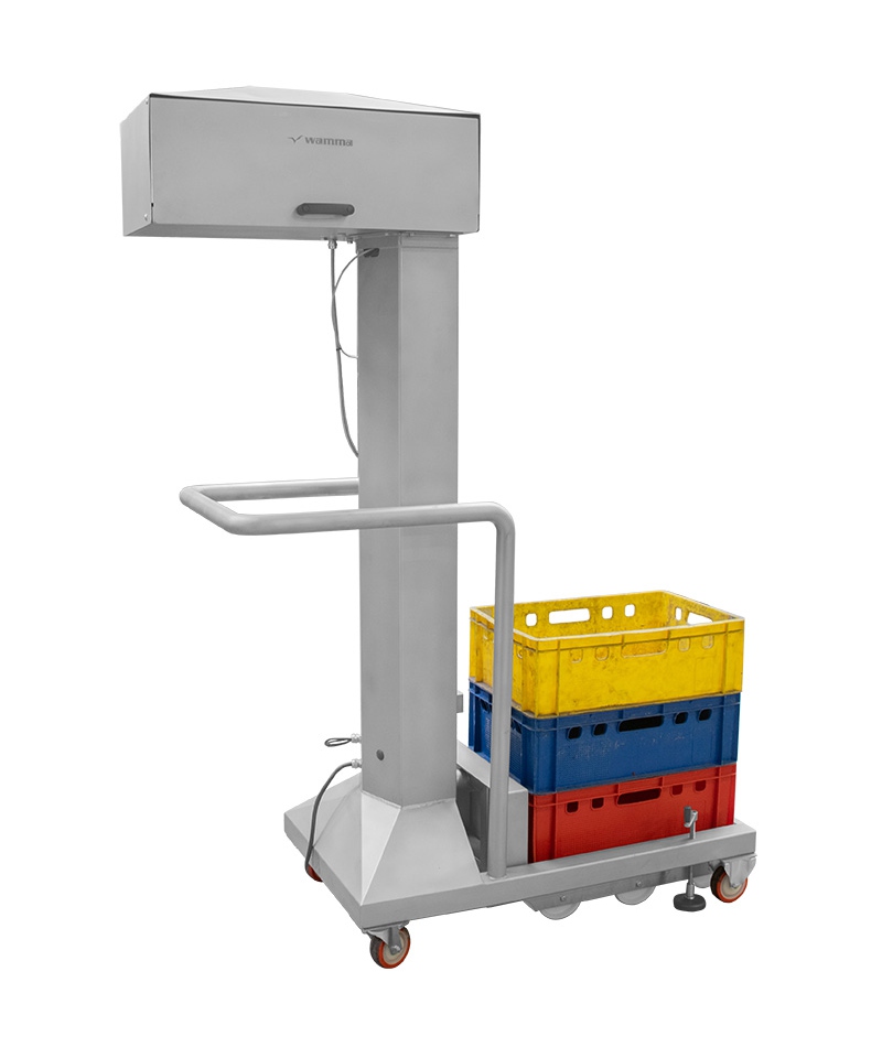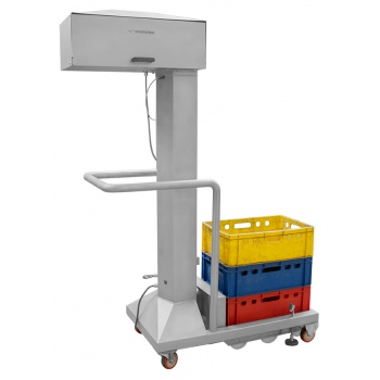 Mobilny podnośnik ułatwia pracę, odciąża plecy pracownika przez co zwiększa się wydajność produkcji.