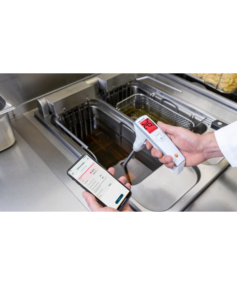 Nowy tester oleju do smażenia testo 270 BT umożliwia jeszcze łatwiejsze, szybsze i bardziej niezawodne monitorowanie jakości oleju do smażenia dzięki połączeniu z aplikacją testo Smart App. Dzięki tej nowej wersji można jeszcze lepiej monitorować wartości TPM oleju do smażenia oraz wyświetlać i analizować wszystkie istotne dane bezpośrednio na urządzeniu mobilnym.