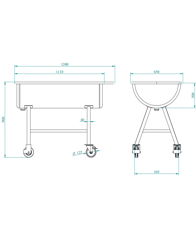 Opcja dodatkowa wersja mobilna wyposażona w 4 koła (2 koła obrotowe w tym 1 z hamulcem + 2 koła stałe)