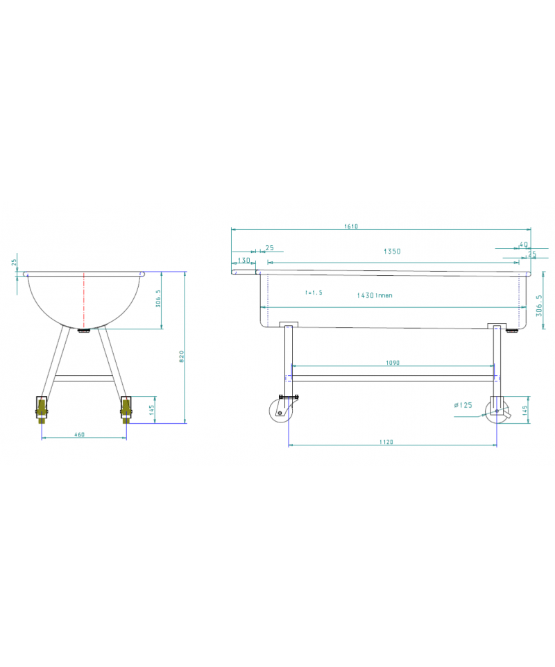 Opcja dodatkowa wersja mobilna wyposażona w 4 koła (2 koła obrotowe w tym 1 z hamulcem + 2 koła stałe)