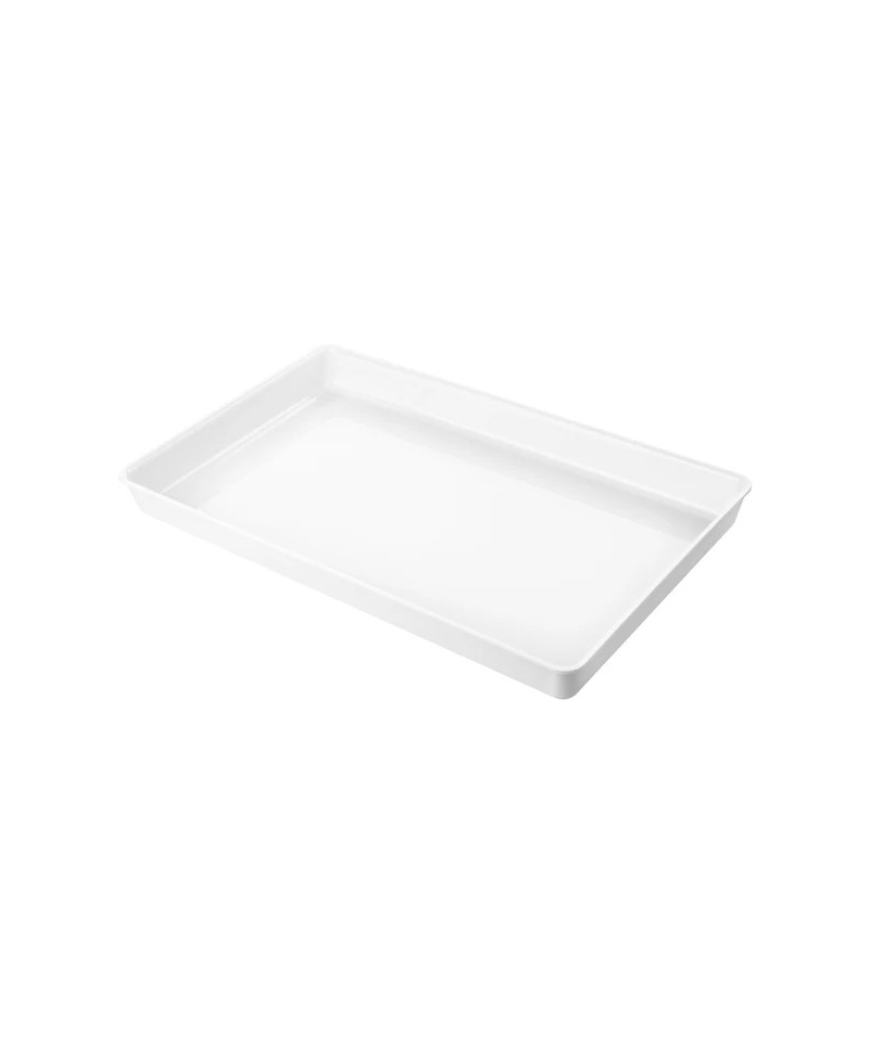 Powierzchnia tacy została zaprojektowana z myślą o łatwym czyszczeniu i codziennej eksploatacji w wymagających warunkach zaplecza gastronomicznego. Tworzywo, z którego wykonano tacę, jest trwałe, odporne na uszkodzenia i higieniczne – spełnia wszystkie standardy nowoczesnej ekspozycji spożywczej. Matowe wykończenie eliminuje refleksy świetlne i eksponuje żywność w sposób naturalny, bez zbędnych zakłóceń wizualnych.